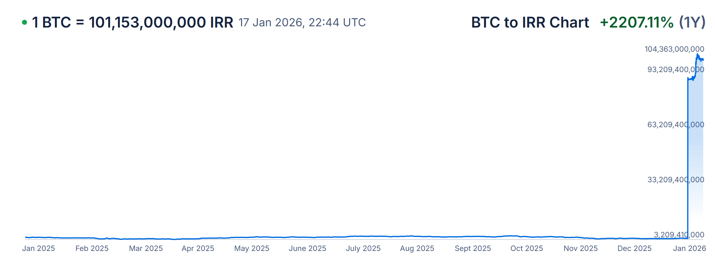 Bitcoin prices in Iran surged to record highs of roughly 103–105 billion rials on local exchanges, up more than 450% since 2016, as the Iranian rial collapsed to around 1.45 million per US dollar on parallel markets. Inflation remains above 40%, sanctions persist, and protests over food and subsidy cuts have spread across more than 200 cities.