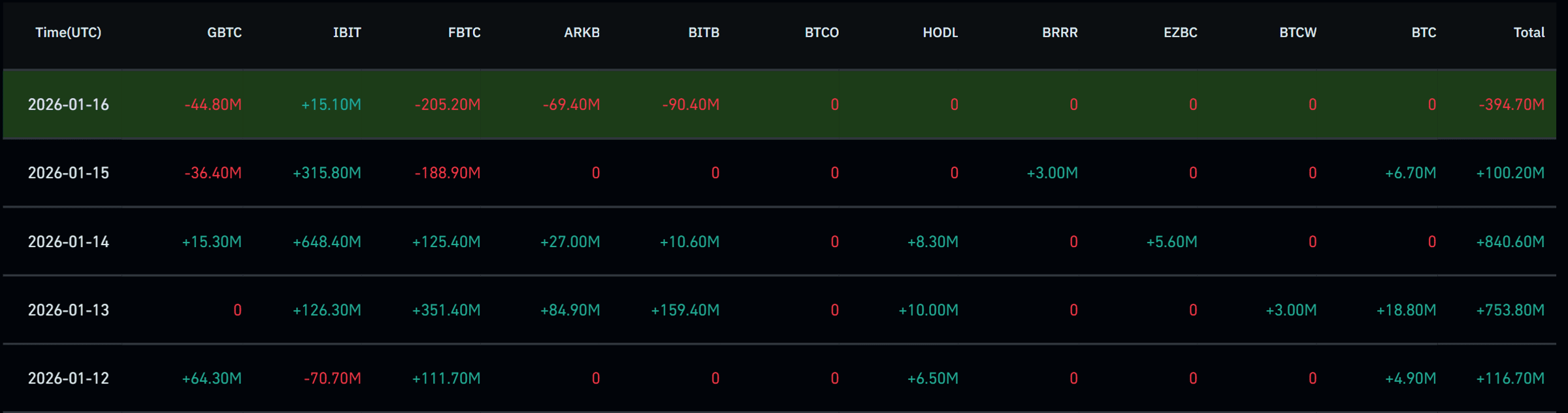 US Spot Bitcoin ETF Total Inflows (Mon-Fri)